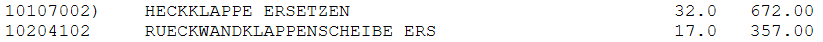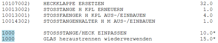 Bild: Wird die Heckscheibe als Ersatz ausgewählt, resultiert im System eine höhere Zeit, obwohl der Aufwand geringer ist