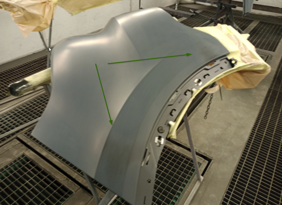 Auf dem nachfolgenden Bild ist zu sehen, dass auch bei einem geprimerten Bauteil Nachbesserungen notwendig sind. Es ist schon vorgekommen, dass Interessenvertreter der Versicherungen dahingehend argumentieren, dass das mit einer Mängelrüge beim Lieferanten erledigt werden muss. Diese Argumentation läuft ins Leere: Der Lieferzustand ist Stand der Technik und entspricht leider dem üblichen Standard. Eine Beanstandung ist meist nicht zielführend, da in aller Regal auch ein zweites Ersatzteil den gleichen Zustand hat. Zudem verzögert sich dadurch die Reparaturdauer und somit entstehen zusätzliche Kosten.