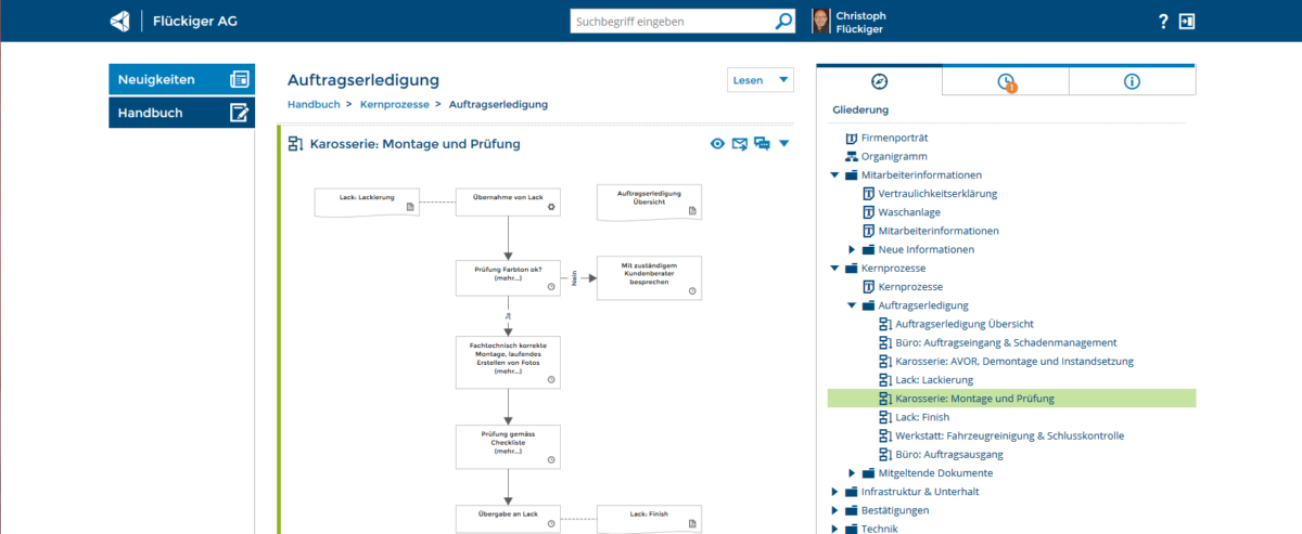 Oben ein Auszug aus unserem QM, unten die Applikation «easycare»