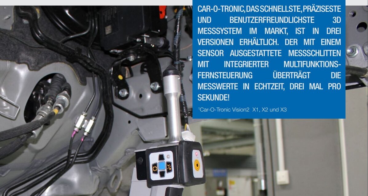 Teilweise müssen Bauteile schon bei einer Abweichung von 3 Millimeter ersetzt werden. 2011 haben wir das innovativste Vermessungssystem, das Car-O-Tronic Vision2 X3 angeschafft. Nun haben wir ein weiteres System in Betrieb genommen.