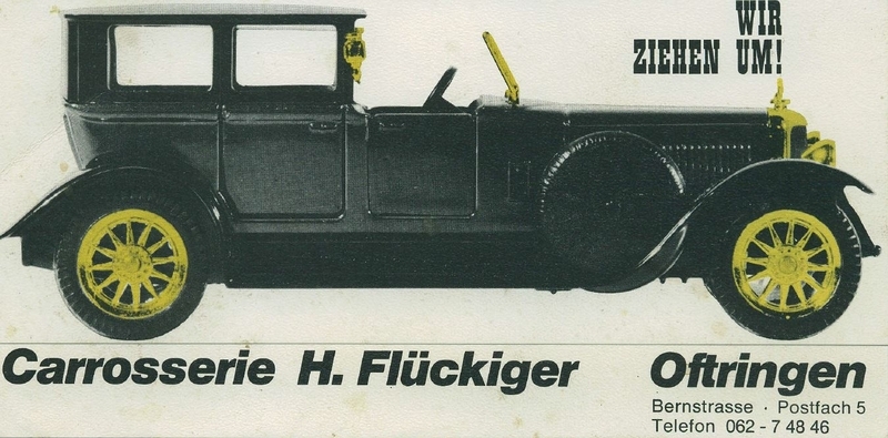 Gründung als Einzelfirma durch Heinz Flückiger an der Zürichstrasse in Oftringen. Der junge Berufsmann hat sich in verschiedenen Betrieben das Rüstzeug für die Führung eines Betriebes geholt. Unterstützt wurde Heinz Flückiger von seiner Ehefrau Therese, welche alle administrativen Arbeiten erledigte und die Buchhaltung führte. Die Carrosserie H. Flückiger spezialisierte sich von Beginn weg auf die Instandstellung von beschädigten Automobilen.