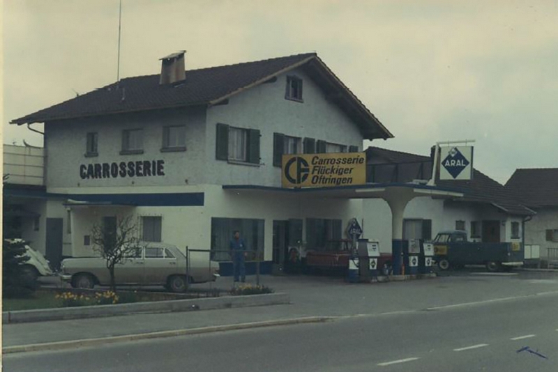 Mit der Massenmotorisierung stieg auch der Bedarf nach Benzin. Die Carrosserie Flückiger modernisierte die Tankstelle und übernahm die Vertretung für die Marke ARAL. Die Tankstelle brachte einerseits Einkommen in die immer noch knappe Kasse des Firmengründers, andererseits brachte sie auch Kunden: Die Carrosserie Flückiger wurde so bei den Automobilisten der Region bekannter.