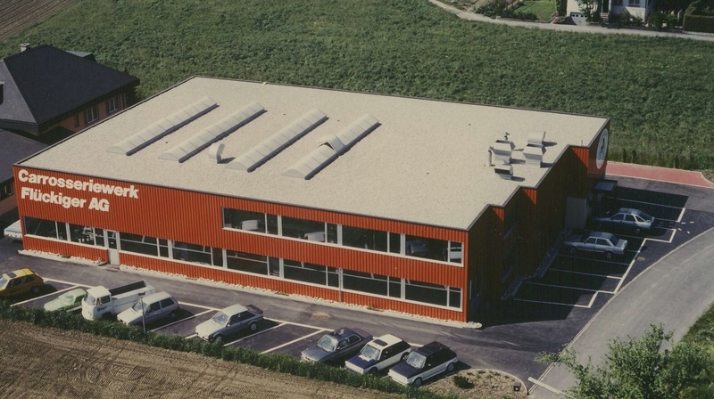 Nachdem sich die Carrosserie Flückiger während der ersten 15 Jahre ihres Bestehens ausschliesslich um die Instandsetzung der Fahrzeuge kümmerte, erfolgte in diesem Jahr ein Meilenstein: Die Angliederung einer eigenen Lackierabteilung. Die Lackierarbeiten erfolgten vorgängig bei verschiedenen regionalen Autolackierbetrieben. Mit der Erweiterung konnten sämtliche Arbeitsprozesse unter einem Dach erledigt werden. Die sprichwörtliche Flückiger-Qualität konnte somit ab diesem Jahr für die gesamte Schadeninstandsetzung garantiert werden.