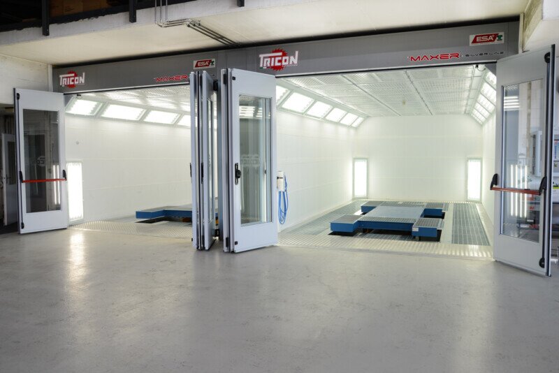 Ersatz der beiden Lackier-/Trocknungskabinen. Die topmodernen Anlagen entsprechen den allerneusten technischen Anforderungen. Die Luftmenge wurde verdoppelt und die computerbasierende Steuerung sichert ein effizientes Arbeiten bei bestmöglicher Ausnützung der Ressourcen (Strom und Gas). Die Lichtmenge wurde verdreifacht, dank einfach zu bedienenden Liften ist ein ergonomisches und qualitativ hochstehendes Arbeiten sichergestellt.
